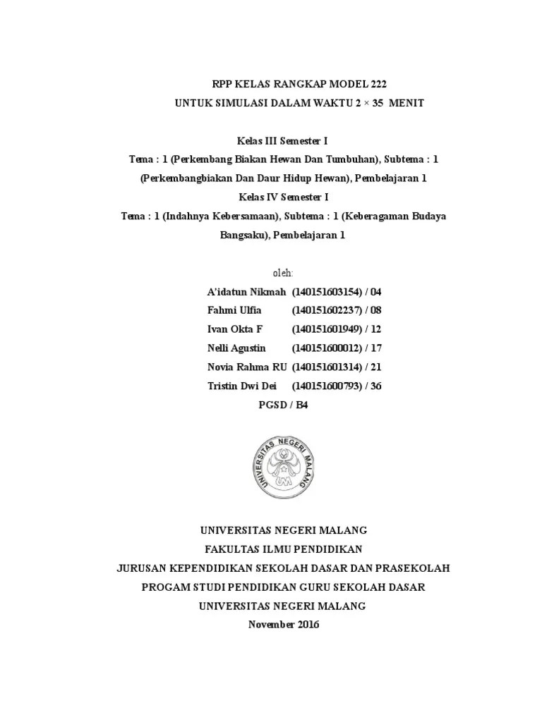 Contoh rpp kelas rangkap model 222 kurikulum 2013 kurikulum .
